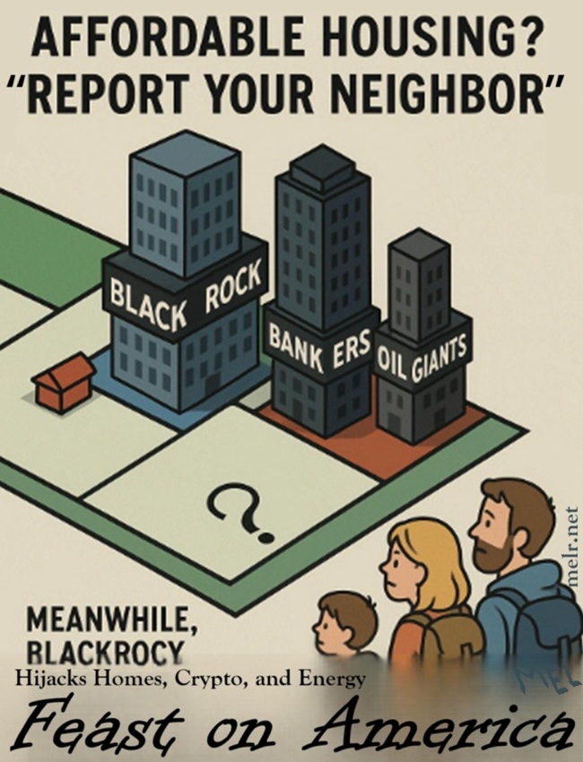 The venom is clear: BlackRock thrives on instability. Debt storms, housing shortages, energy crises — these are not problems to them, but profit engines. Every vulnerability in the system is a new revenue stream. And while DHS tells you to report your neighbor, BlackRock is quietly buying your future.